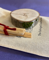 Base is made from wood rounds we cut, dry, bake and sand by hand. Please note that each wood base varies, it’s nature 🌱 Some will have interesting patterns, bits of moss, cool bark texture... they all vary. Most importantly, they make the perfect natural display for your cards.